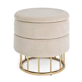 Lo sgabello Pavlina è un esempio di design intelligente. La sua solida struttura è rivestita in un elegante tessuto di poliestere in una tonalitàbeige neutra, facile da abbinare. La seduta, comodamente imbottita, funge anche da coperchio per un capiente vano contenitore, l'ideale per nascondere alla vista plaid, cuscini o riviste. Questo sgabello in tessuto è la soluzione perfetta per chi desidera un arredo che sia bello, accogliente e incredibilmente pratico, perfetto come poggiapiedi o come seduta aggiuntiva.