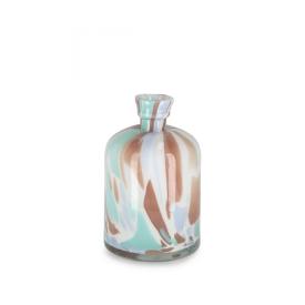 La bottiglia in vetro colorato Matara è un pezzo di grande impatto visivo. I suoi colori, un mix di azzurro e marrone, creano un effetto cromatico affascinante che cambia con la luce. La sua altezza media la rende un vaso decorativo estremamente versatile, perfetto per ospitare un paio di steli fioriti, dei rami secchi, o per essere esposto da solo come un pezzo scultoreo. Posizionalo su una credenza, un tavolino o una mensola per aggiungere un tocco di colore e raffinatezza al tuo arredo casa.