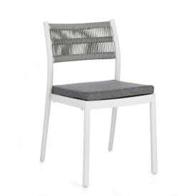 La sedia Alvin è progettata per il massimo comfort. La struttura è in alluminio verniciato a polvere in colore bianco, un materiale leggero, robusto e resistente alla ruggine. La seduta e lo schienale sono completati da un morbido cuscino imbottito, rivestito in tessuto per esterni (olefin) in una raffinata tonalitàgrigio chiaro, resistente all'acqua e ai raggi UV e sfoderabile per una facile pulizia. A differenza delle sedie senza imbottitura, questo modello offre un comfort prolungato. La sedia è anche impilabile (rimuovendo il cuscino), per una facile conservazione.