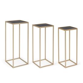 Porta un tocco di lusso nel tuo salotto con il set di 3 tavolini Nucleos. Finitura dorata e design a incastro per un mobile esclusivo e garantito. Acquistalo subito con consegna immediata!< p>