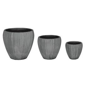 Questo set di portavasi si compone di tre pezzi rotondi di dimensioni a scalare, per creare una composizione armonica. Sono realizzati in cemento, in una tonalitàdi grigio che ne esalta la matericità. La loro unicitàrisiede nella texture, che presenta un motivo decorativo a rilievo di ispirazione etnica. Sono i vasi e portavasi ideali per piante da interno ed esterno, perfetti per un arredo in stile industriale, etnico-chic o wabi-sabi.