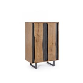 Il design del mobile Garwood è un trionfo dello stile industriale. La struttura solida è in acciaio, mentre le ante, i cassetti e i ripiani sono realizzati in legno di abete, con una finitura che ne esalta le venature e il carattere vissuto. La parte superiore presenta due ante in vetro con telaio in metallo, ideali per esporre gli oggetti più belli proteggendoli dalla polvere. La sezione centrale offre due pratici cassetti, mentre la base è dotata di due ante in legno pieno per nascondere ciò che non vuoi mostrare. Questo mobile in legno e metallo è un pezzo di arredo casa completo, perfetto per chi cerca mobili online di alta qualitàe dal design ricercato.