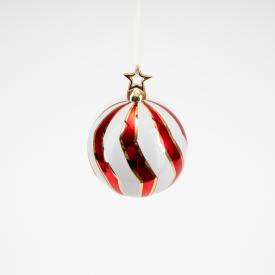 Il principale vantaggio di questa pallina è il suo design festoso e raffinato. La combinazione di bianco, rosso e oro è l'essenza stessa del Natale, qui interpretata con grande eleganza. La dimensione di 10 cm e la qualitàdel vetro la rendono un pezzo importante. La stellina al posto del classico gancio è un dettaglio che la distingue. La confezione regalo inclusa la rende un dono perfetto e pronto da consegnare. È ideale per un albero di Natale tradizionale e di classe.