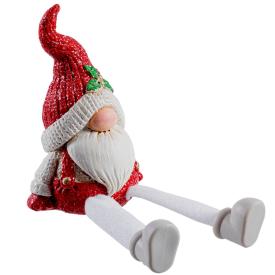 Corpo in resina e gambe in tessuto, dimensioni 8x12 cm. La finitura in vernice lucida protegge i dettagli. Incluso nella confezione: figura di Babbo Natale in resina con gambe in stoffa.