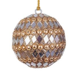 Rendi il tuo albero elegante e scintillante con questa preziosa pallina di Natale. Con un diametro di 7 cm e interamente decorata con pietre e perline oro e argento, è un addobbo che non passa inosservato. È la scelta ideale per chi cerca addobbi per albero di Natale di gusto classico e sofisticato. Se vuoi arricchire il tuo albero con un tocco di lusso e luminosità, questa pallina è perfetta.