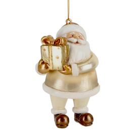 Costruito in resina con finitura oro, misura 9 cm di altezza. Il dono è rifinito a mano. Incluso nella confezione: figura di Babbo Natale in resina con dono.