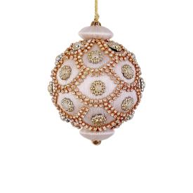Pallina di Natale Grande in Vetro Rosa con Perline e Decorazioni, Ø8cm - VacchettiPorta un'eleganza delicat...