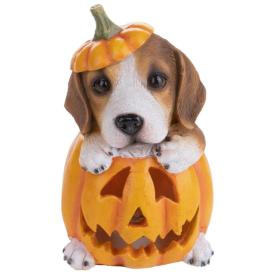 Una zucca così non l'hai mai vista! Ordina la Zucca in resina con cagnolino e illumina il tuo Halloween. Aggiungila al carrello per una decorazione unica e garantita!