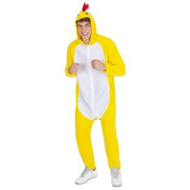 Il vantaggio di questo costume da uomo (ma adatto a tutti) è il suo design "tutto-in-uno" e la sua comodità. È una tuta intera gialla realizzata in morbido poliestere o pile, con un cappuccio integrato che riproduce la testa del pollo, con tanto di cresta rossa, becco e occhi. Spesso include anche copriscarpe a forma di zampe di gallina. È un costume caldo, comodo e facile da indossare. Ideale per addii al celibato, feste goliardiche, Carnevale e per qualsiasi evento in cui si voglia portare un'ondata di risate. (Nota: i dati di origine che menzionano "ali" separate sono probabilmente un errore; solitamente sono integrate nella tuta).
