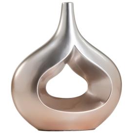 Questo vaso è un pezzo di grande originalità. Realizzato in ceramica laccata di alta qualità, ha una sinuosa forma a goccia. La sua unicitàè data dalla finitura: l'esterno è di un bellissimo color rosa con una superficie finemente rigata, che crea un gioco di texture molto piacevole, mentre l'interno sorprende con una finitura lucida. Con le sue dimensioni di 36,5x40 cm, è un complemento arredo di grande presenza, ideale da esporre su un mobile o una consolle. Il foro superiore (Ø3,5 cm) permette di inserire fiori a stelo lungo. È un vaso di design che unisce una forma organica a una lavorazione materica e a un colore di grande tendenza.