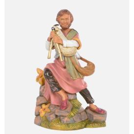 Ogni statua Fontanini è un pezzo unico, grazie alla pittura manuale eseguita da abili artigiani. Il PVC speciale utilizzato garantisce una definizione straordinaria dei particolari scultorei e una notevole resistenza. Il pastore seduto, assorto nel suono della sua zampogna, è una scena di vita quotidiana che acquista un significato speciale nel contesto del presepe. Le figure realistiche Fontanini sono apprezzate in tutto il mondo per la loro capacitàdi animare l'ambientazione artigianale.