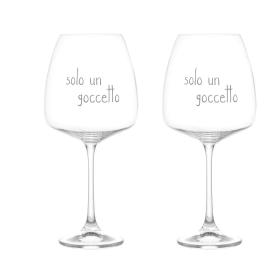 Per gli amanti del vino con un grande senso dell'umorismo, ecco l'ironico set di calici da vino della linea Simple Day. Con la scritta "solo un goccetto" serigrafata su un calice dall'enorme capacitàdi 770 ml, questo set da due bicchieri è il modo più divertente per gustare il proprio vino preferito. È la scelta perfetta per chi cerca calici vino simpatici e vuole stupire gli amici durante un aperitivo o una cena. Perché chi ha detto che "un goccetto" debba essere piccolo?