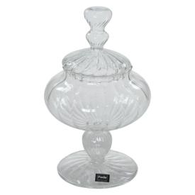 Vaso in vetro trasparente porta bon bon, con coperchio.