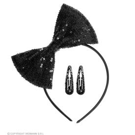 Brilla come una stella! Acquista subito il cerchietto con maxi fiocco di paillettes nere. L'accessorio perfetto per un look glamour e garantito!