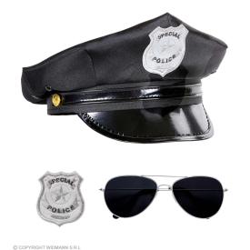Tutto pronto per l'arresto! Acquista il set da poliziotto con cappello, occhiali e distintivo. Il kit completo per un travestimento immediato e garantito!