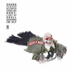 Il punto di forza di questo scheletro animatronico è il suo movimento. Attivato da un sensore sonoro (basta un applauso o un urlo), lo scheletro inizia a strisciare sul pavimento, come se stesse cercando disperatamente di raggiungerti. Il tutto è accompagnato da grida d'aiuto terrificanti e da occhi che si illuminano di una luce sinistra. Con i suoi 80 cm di lunghezza, è abbastanza grande da essere una minaccia credibile. È la scelta ideale per chi vuole comprare decorazioni per Halloween online che siano dinamiche e interattive al massimo livello.