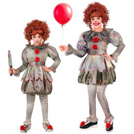 Trasforma la tua bambina nella versione più spaventosamente carina del clown più famoso del cinema con il nostro Costume da Clown Assassina IT. Questo travestimento, ispirato al terrificante Pennywise ma in chiave femminile, è perfetto per le bambine che amano l'horror e vogliono un look di Halloween unico e d'impatto. Perché essere un clown allegro quando si può essere misteriosamente inquietanti? Questo costume per bambina è una delle idee costumi bambini originali più audaci e di tendenza per la notte delle streghe.