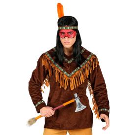 Questo costume uomo è stato disegnato per un look autentico e suggestivo. La casacca in tessuto effetto camoscio, arricchita da frange e decorazioni tipiche, è il cuore del costume. Il set è completato da una fascia per la testa con piuma, simbolo di valore. � la scelta perfetta per chi vuole comprare costumi adulti online e cerca una base eccellente per un travestimento da nativo americano, da completare con pantaloni coordinati e un'ascia giocattolo. Uno dei costumi adulti per carnevale più versatili.