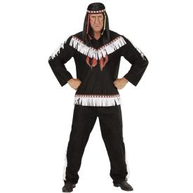 Questo costume da indiano per adulti si compone di una maglia a maniche lunghe e pantaloni coordinati, entrambi realizzati in un comodo poliestere di colore nero. Il set è impreziosito da frange e da una pettorina con decorazioni a contrasto, che risaltano splendidamente sul fondo scuro. Inclusa nella confezione troverai anche la classica fascia per la testa con piuma, per completare il tuo look da guerriero della notte. � una base eccellente e confortevole per i tuoi costumi adulti per carnevale, facile da indossare e da personalizzare.