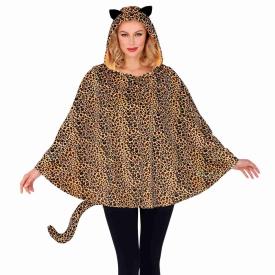 Questo poncho leopardato è un concentrato di stile e praticità . Realizzato in un morbido tessuto con l'iconica fantasia a macchie del leopardo, è un capo che non passa mai di moda. Il dettaglio che lo rende ancora più irresistibile è il cappuccio integrato, che riproduce la testa di un felino completa di simpatiche orecchie. La vestibilità ampia e la taglia unica lo rendono adatto a tutte. � la scelta perfetta per chi vuole comprare costumi online che siano un mix di comfort e glamour.