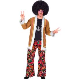 Questo costume da hippie si distingue per il suo design audace e ricco di personalità . Il pezzo forte è il lungo cappotto beige, finemente ricamato con motivi floreali e arricchito da un colletto e polsini in morbida pelliccetta sintetica bianca, un dettaglio che evoca subito le icone rock dell'epoca. Sotto, il costume include una camicia e un paio di pantaloni lunghi a zampa con una vivace fantasia floreale. � il completo ideale per chi vuole comprare costumi adulti online e trovare un look che sia allo stesso tempo stravagante e stiloso.