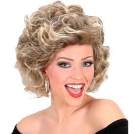 La nostra parrucca di Olivia Newton-John riproduce fedelmente la sua celebre acconciatura da "bad Sandy": capelli biondi, corti e ricci, pieni di volume e carattere. � un look che ha fatto la storia, simbolo di una trasformazione da ragazza perbene a donna sicura di sé. � un accessorio per travestimenti che da solo crea il personaggio. Abbinala a leggings neri attillati, a un top con le spalle scoperte e a un giubbotto di pelle per un costume da Grease assolutamente perfetto.