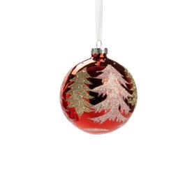 Pallina Natale Vetro Cm.Ø8 Rossa con Righe Bianche/Verdi