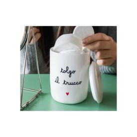 Porta cotone in Ceramica smaltata con scritta "Sono Vanitosa". Contenitore multiuso con coperchio an...