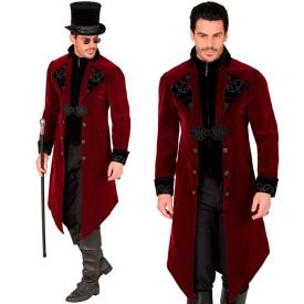 Cappotto in vellutino bordeaux, stile gotico con polsi e rifiniture in nero, disponibile in diverse taglie da ...