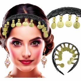Copricapo Gitana azzurro in tessuto con Monete oro