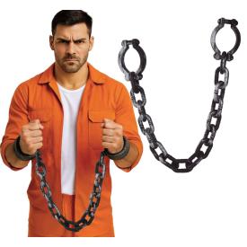 Le manette integrate per i polsi permettono di entrare nel ruolo del prigioniero in fuga o del condannato ai lavori forzati. La finitura grigio metallico conferisce un look vissuto, perfetto per Carnevale, Halloween o recite teatrali a tema "crime".