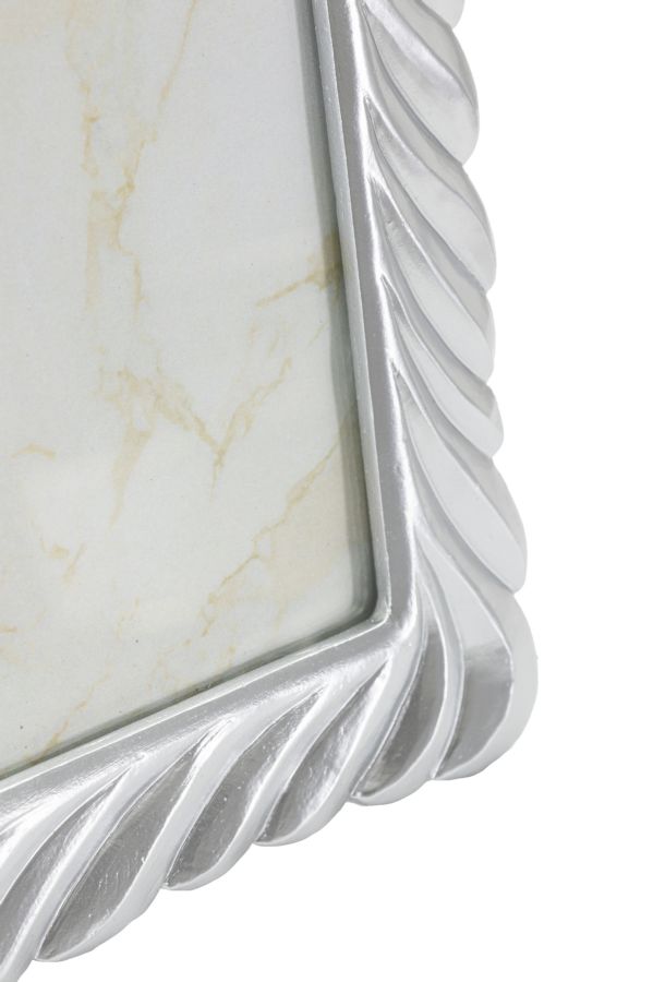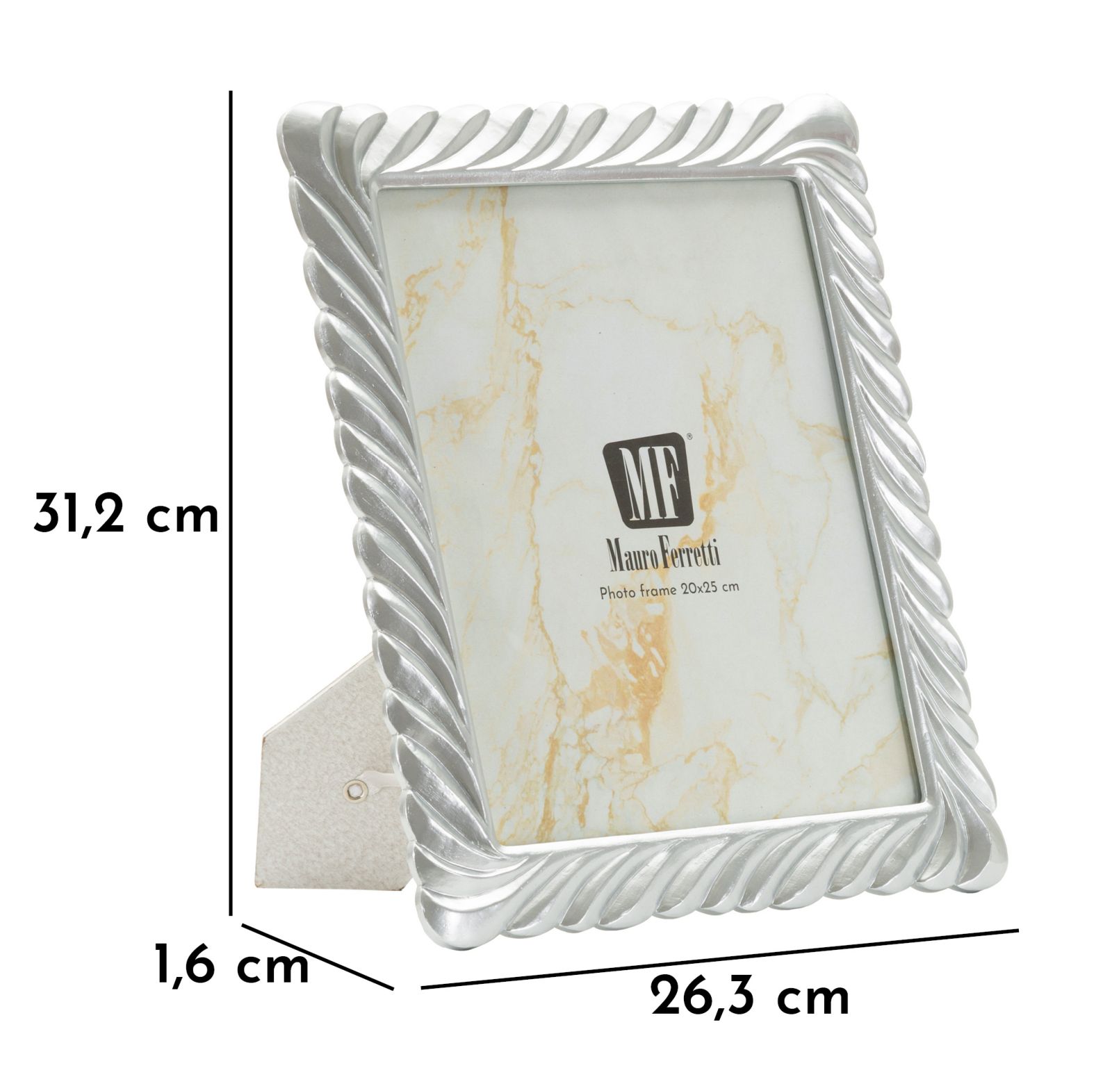 Cornice porta foto marca Mascagni realizzata in resina di colore bianco panna, con bordo effetto corda intrecc...