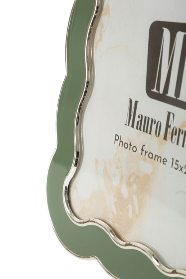 Cornice porta foto marca Mascagni realizzata in resina di colore bianco panna, con bordo effetto corda intrecc...
