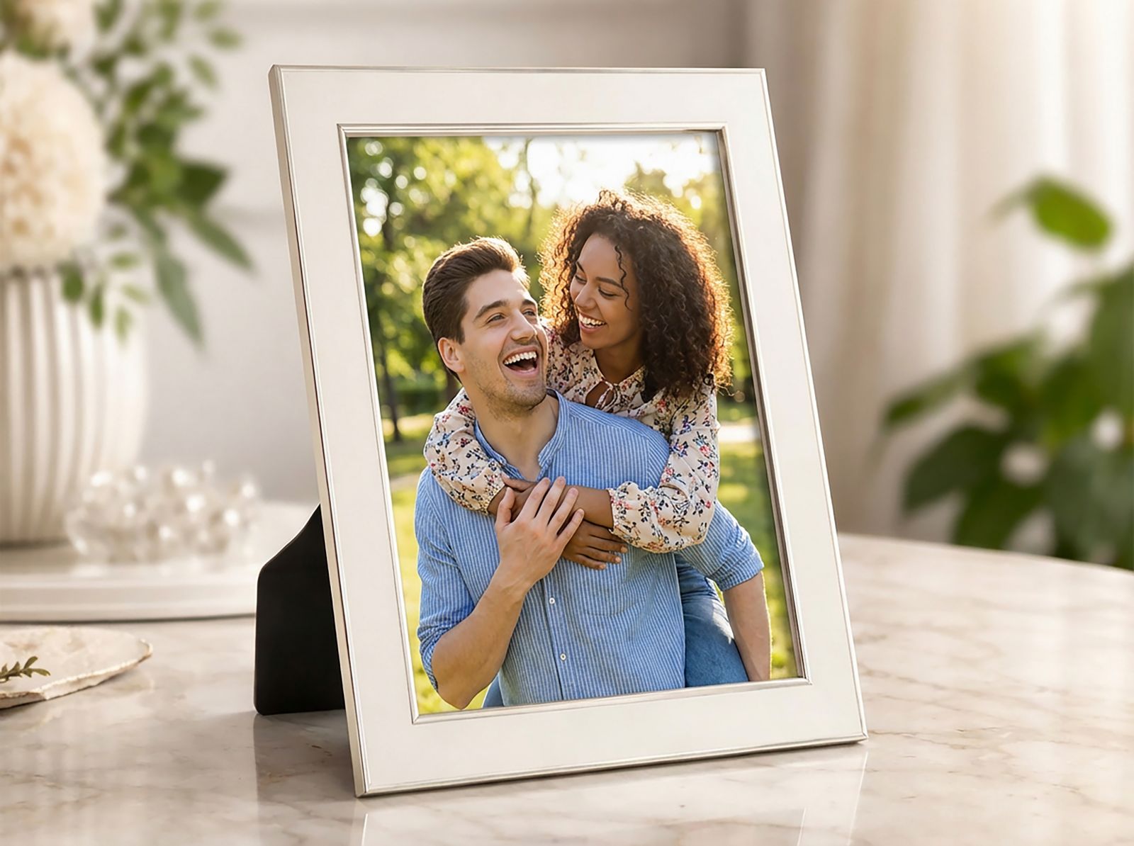 Cornice Portafoto in Legno con Fiocco in Organza 13x18 cm - M2 StoreIncornicia i tuoi ricordi più dolci con...