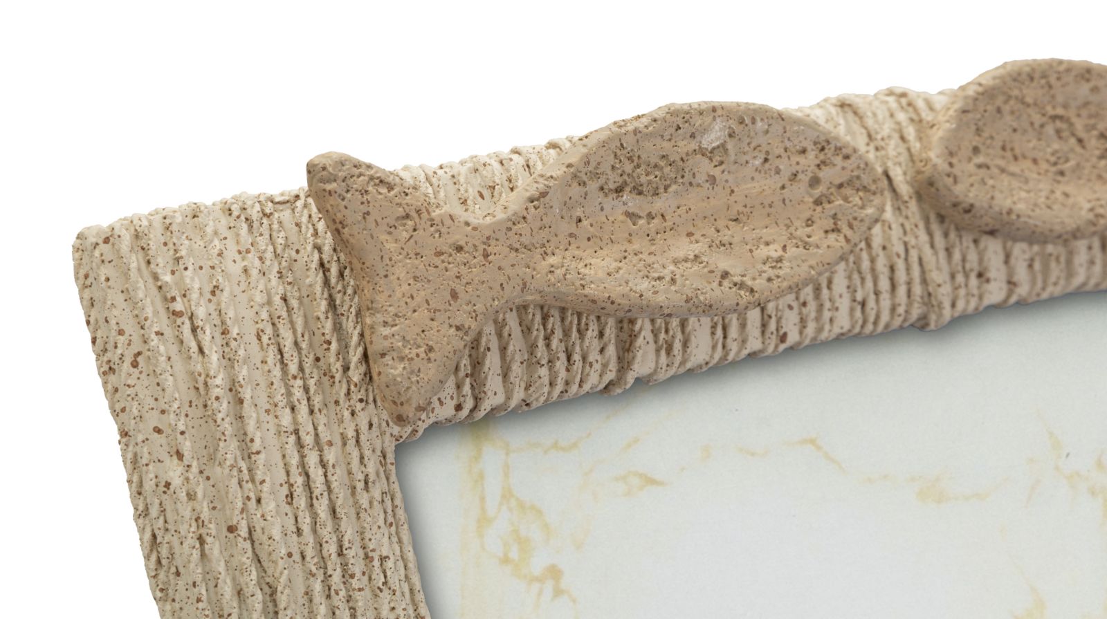 Cornice portafoto marca Mascagni realizzata in resina di colore panna, con bordo effetto corda intrecciata in ...