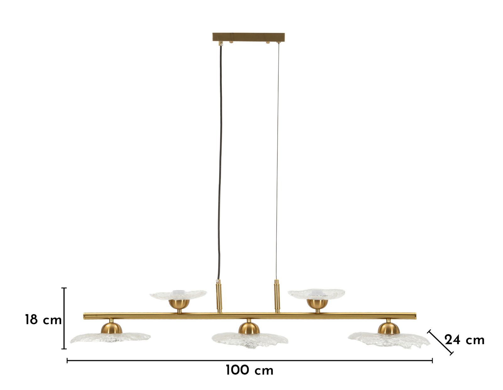 Corpo lampadario, rosone, cavi di sospensione. Lampadine non incluse.