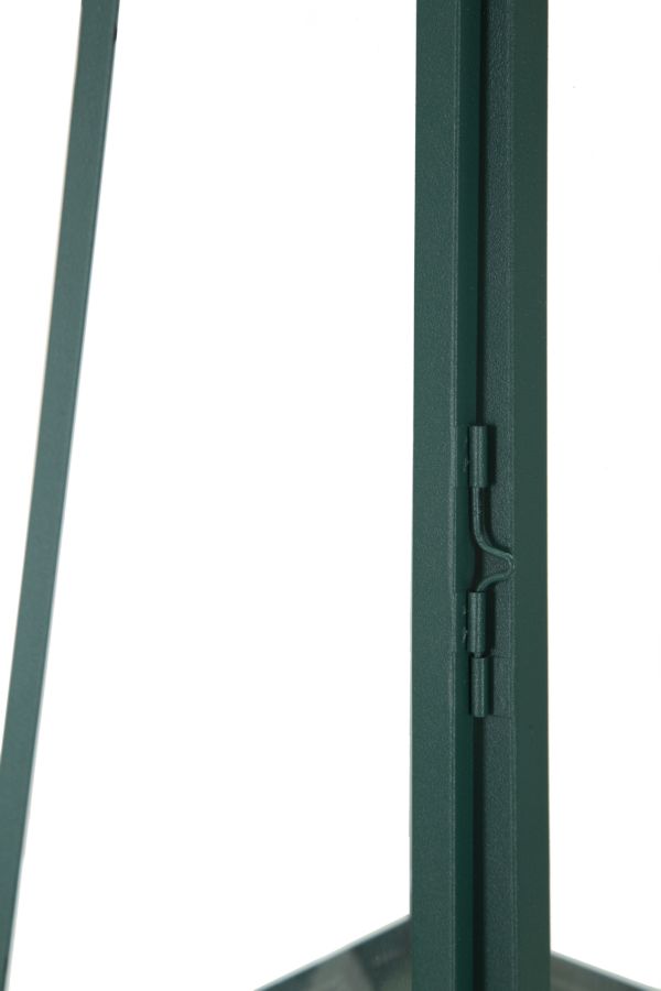 Lanterna portacandele con struttura in metallo di colore grigio opaco e pareti in vetro. con gancio per append...