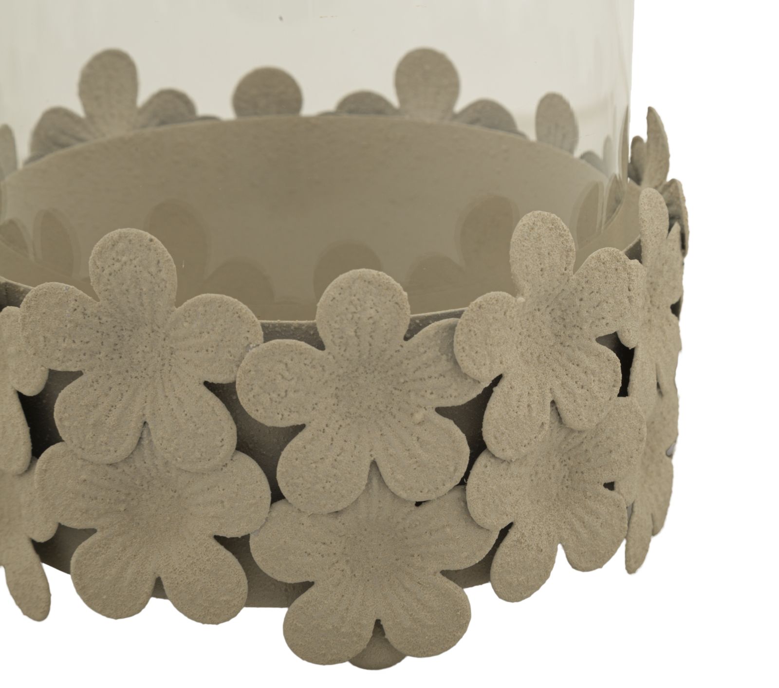 Lanterna portacandele con struttura in metallo di colore grigio opaco e pareti in vetro. con gancio per append...