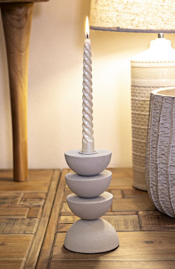 Portacandela Candelabro in Resina Argento Anticato H38 cm | Innova - M2 StoreAggiungi un tocco di eleganza cla...