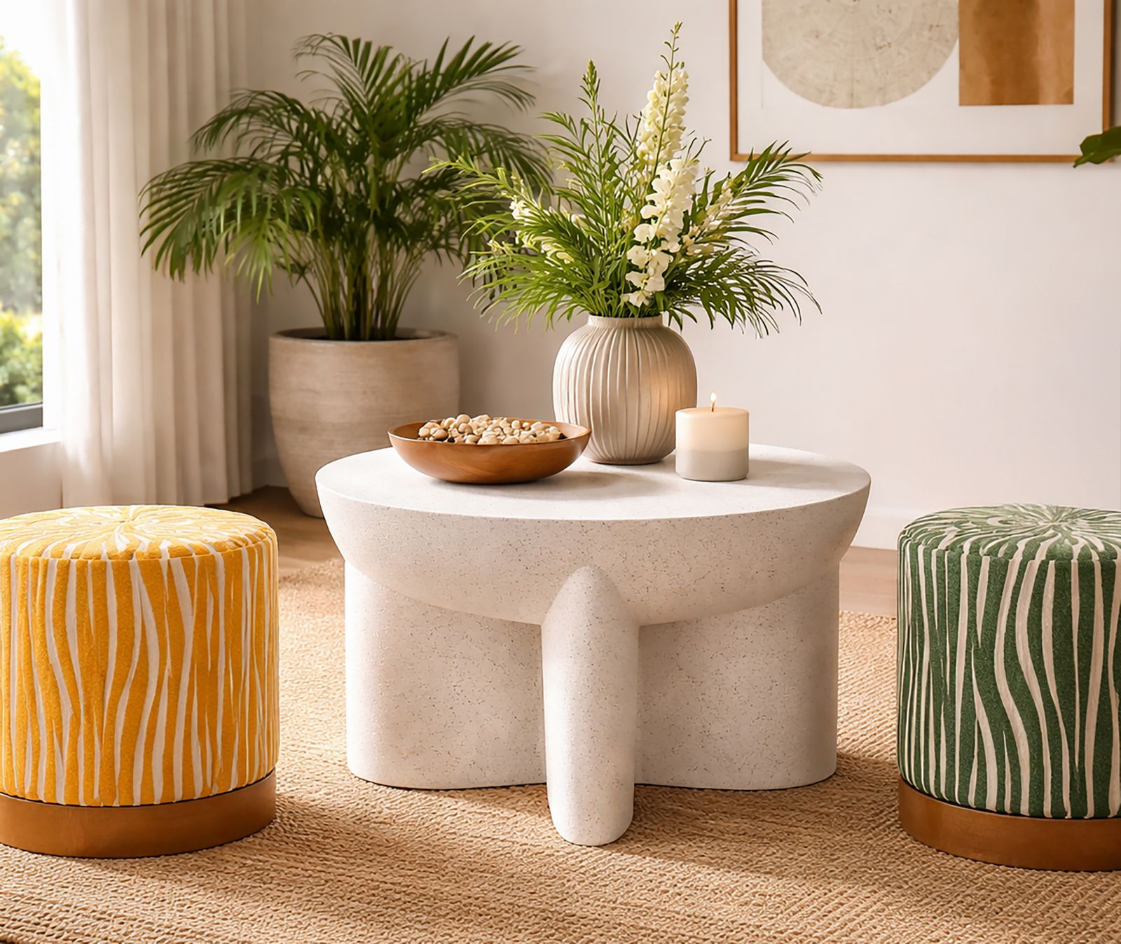 Set composto da 1 Tavolino grande (Ø37x47 cm) e 1 Tavolino piccolo (Ø31x42 cm).