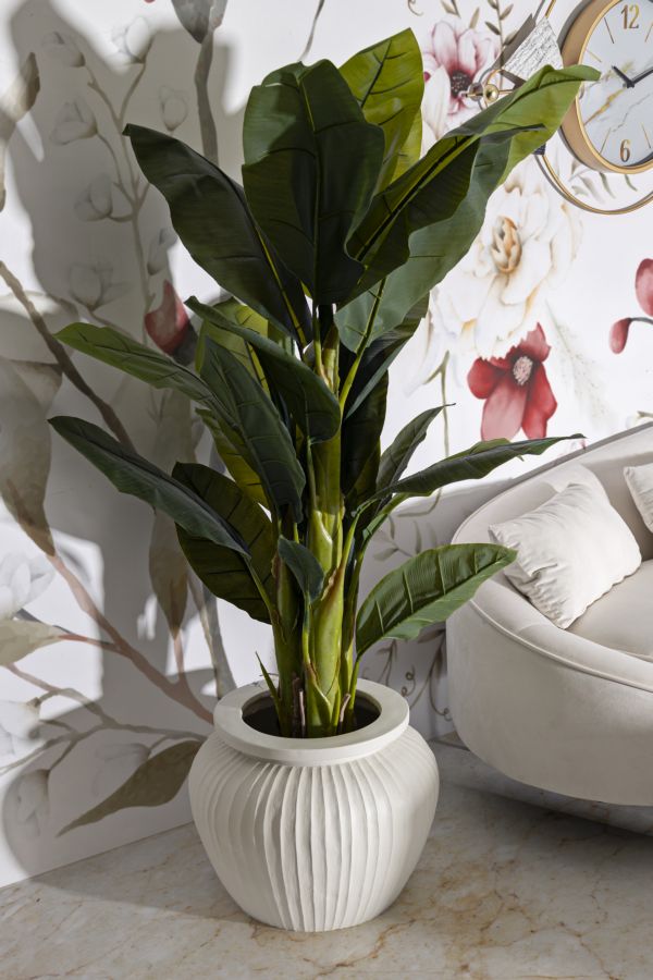 Vaso Alto in Ceramica "Zelda" Bianco con Rilievi Orizzontali h36 cm - M2 StoreArreda i tuoi spazi co...