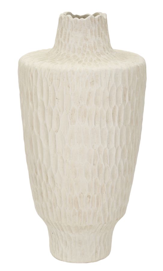 Vaso Alto in Ceramica "Zelda" Bianco con Rilievi Orizzontali h36 cm - M2 StoreArreda i tuoi spazi co...