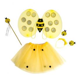 Questo costume bambina è un concentrato di allegria. Il set completo include un vestitino con gonna in tulle gialla a pois neri, un paio di ali abbinate, un cerchietto con le antenne e una bacchetta magica. Tutti i pezzi sono realizzati in poliestere e materiali leggeri, pensati per il comfort delle più piccole. Se cerchi idee costumi bambini originali, la coccinella gialla è una scelta che sorprende e conquista. È ideale per chi vuole comprare costumi bambini online e cerca un travestimento completo, pronto all'uso, per Carnevale, recite o feste di compleanno a tema.