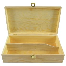 Questa cassetta in legno è un classico intramontabile. Realizzata in legno naturale, ha un aspetto robusto e tradizionale. La chiusura a cerniera assicura che le bottiglie rimangano al sicuro durante il trasporto. Le dimensioni di 36x20x9 cm sono studiate per ospitare comodamente due bottiglie standard. È un portabottiglie in legno perfetto non solo come confezione regalo, ma anche per organizzare la propria piccola cantina o come complemento d'arredo in una cucina rustica.