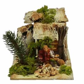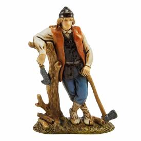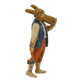Statua cm.10 Legnaiolo con Bastone e Cesta sulle Spalle | Moranduzzo