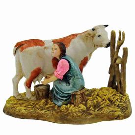 Statua cm.10 Mungitrice Seduta con Mucca |Moranduzzo