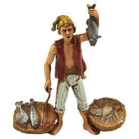 Statua cm.10 Pescivendolo con Cesta Pesce | Moranduzzo