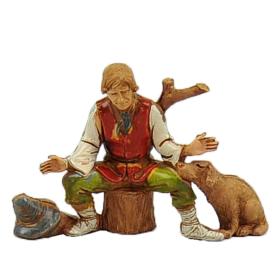 Statua cm.10 Pastore Seduto sul Tronco con Cane |Moranduzzo