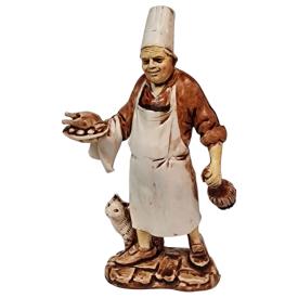 Statua cm.10 Oste con Piatto Fiasco e Gatto |Moranduzzo
