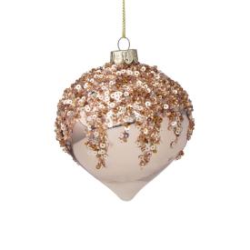 Pallina di Natale in Vetro Champagne Opaco con Decori, Ø8cm - Inge's GlassPorta un'eleganza sobria, un luss...